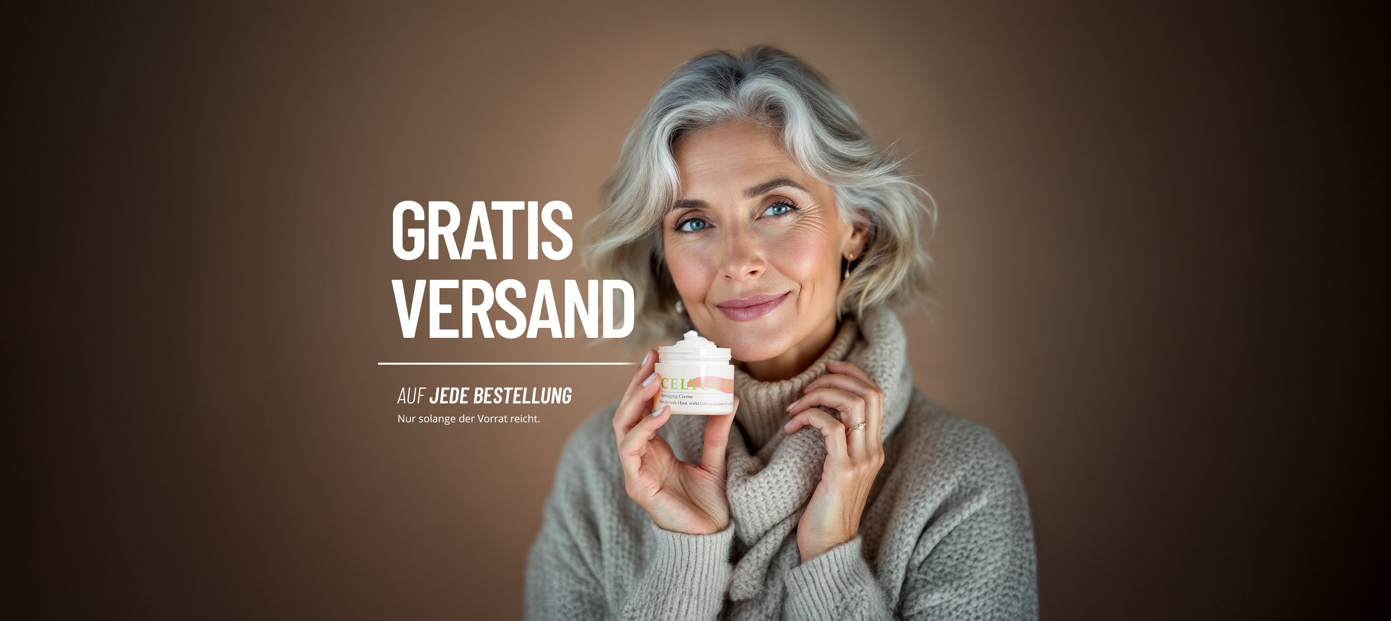 "Ich fühle mich keine Falte älter - seit 20 Jahren! Die Celyoung Antiaging Creme fühlt sich so gut auf der Haut an. Sie spendet Feuchtigkeit, zieht sofort ein, glänzt und klebt nicht und macht Falten fast wie unsichtbar."